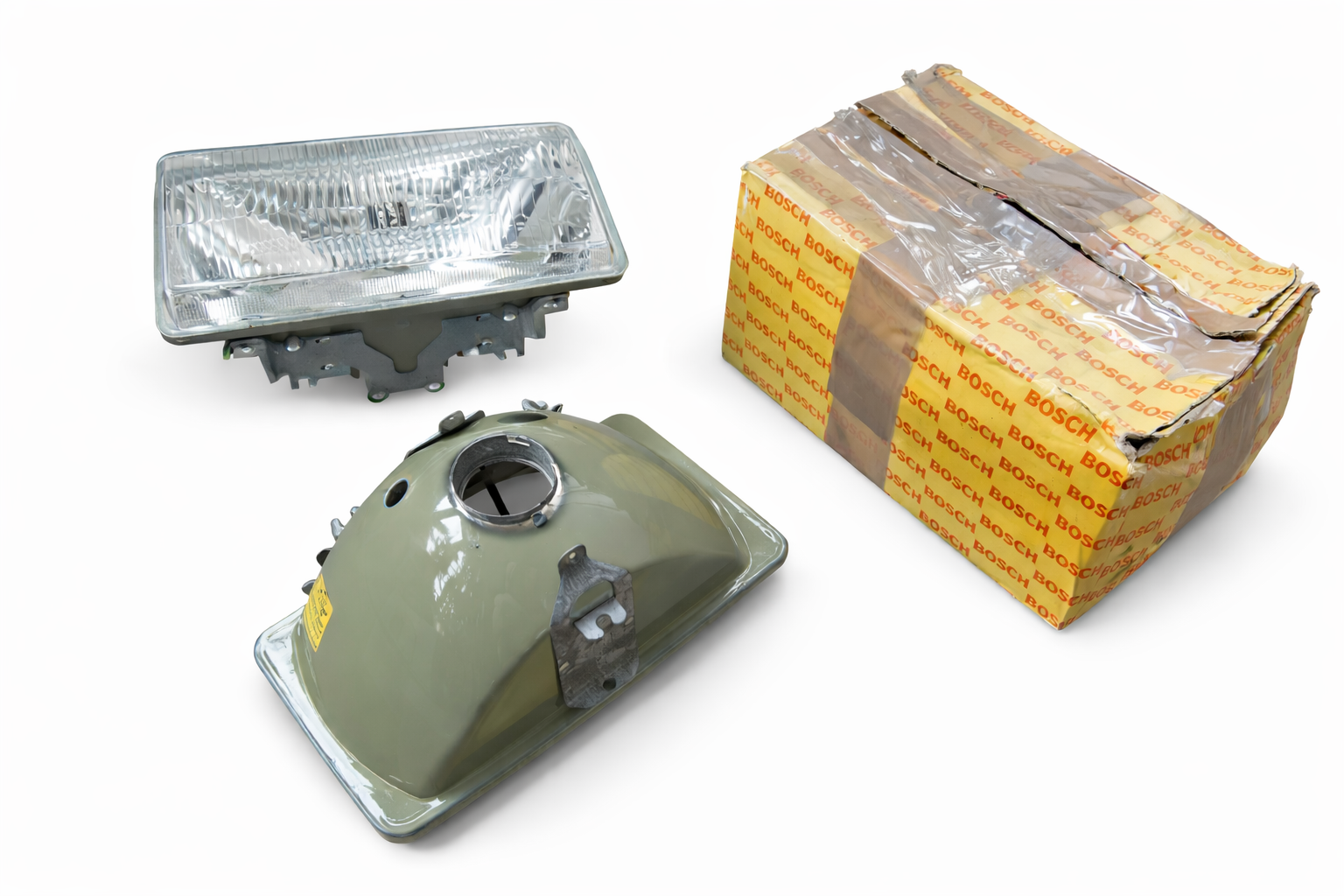 Set of NOS Consul/Granada headlights. Originla Bilux but you can use p45t halogen lamps.